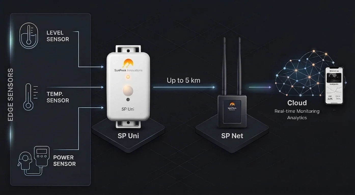 The core of the solution is the SP Uni universal logger—a unique device engineered for the toughest environments. While standard sensors lose connectivity behind thick metal refrigerator walls or fail due to condensation, the SP Uni keeps running.