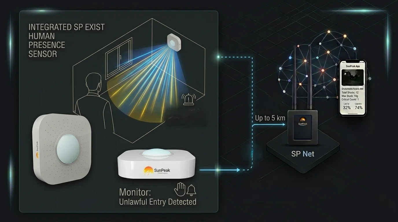 Security is only effective when it provides context, not just noise. SunPeak SmartCloud integrates data from all sensors into a unified logic: the system distinguishes between a scheduled security patrol and unauthorized presence. If the SP Shake sensor records perimeter vibration while SP Exist confirms movement in a restricted area, SmartCloud instantly triggers an alarm scenario, alerting security via Telegram or Push notifications.